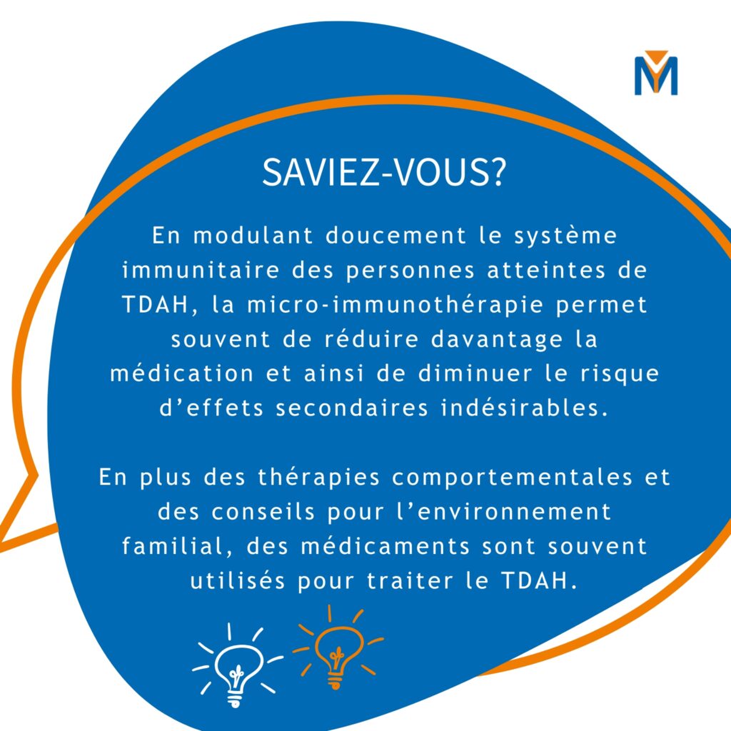Bien que le TDAH soit principalement considéré comme un trouble neurologique, des traitements complémentaires comme la micro-immunothérapie peuvent jouer un rôle précieux pour favoriser le bien-être général et soulager les symptômes. En optimisant le système immunitaire, la micro-immunothérapie peut améliorer la capacité de l'organisme à réagir au stress et à d'autres facteurs environnementaux. Cela peut non seulement améliorer l'équilibre émotionnel et mental, mais aussi accroître l'efficacité d'autres approches thérapeutiques. Cependant, une consultation avec un praticien qualifié est importante pour s'assurer que cette forme de thérapie répond aux besoins individuels.