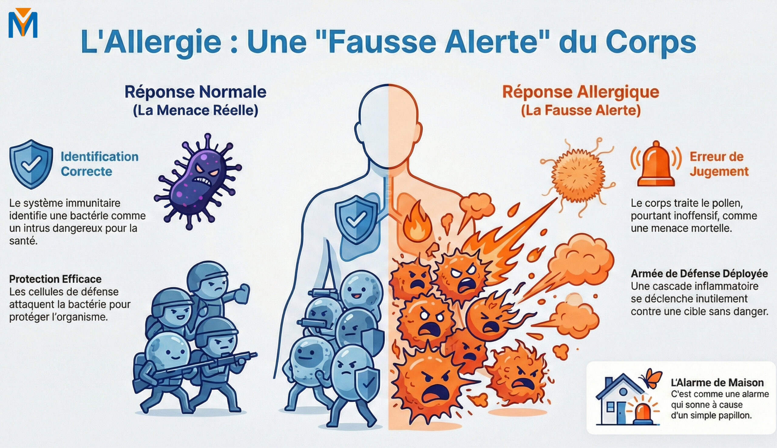 C'est un peu comme si l'alarme de votre maison se déclenchait à chaque fois qu'un papillon passe devant la fenêtre. Cette "fausse alerte" déclenche une cascade de réactions inflammatoires destinées à expulser l'intrus, provoquant les symptômes que nous connaissons tous.