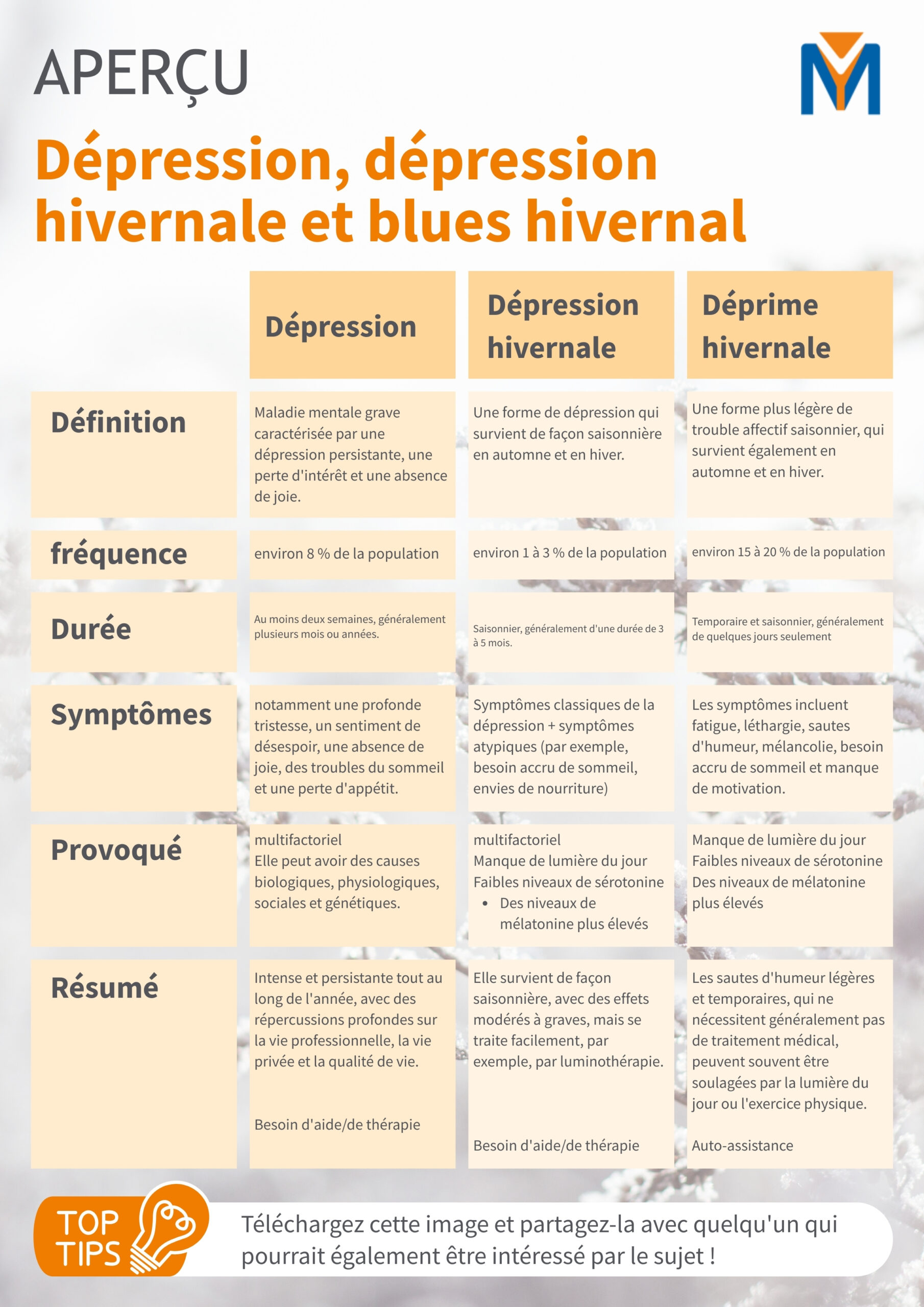 Brève comparaison : dépression, dépression hivernale et blues hivernal